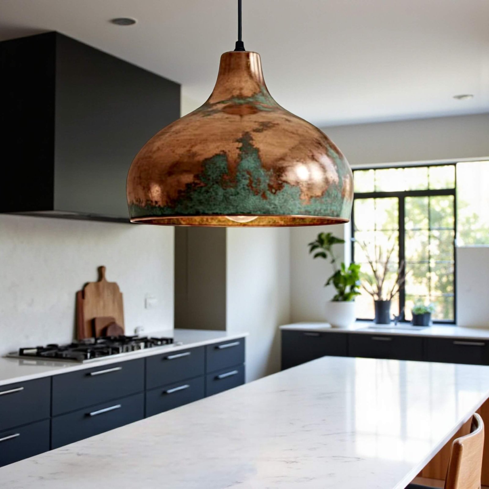 This copper kitchen island pendant light will bring warmth, character, and timeless elegance to your space, handcrafted from solid copper and finished with a natural oxidized patina.